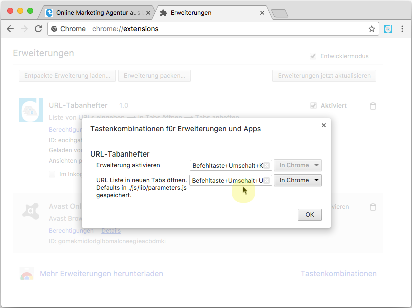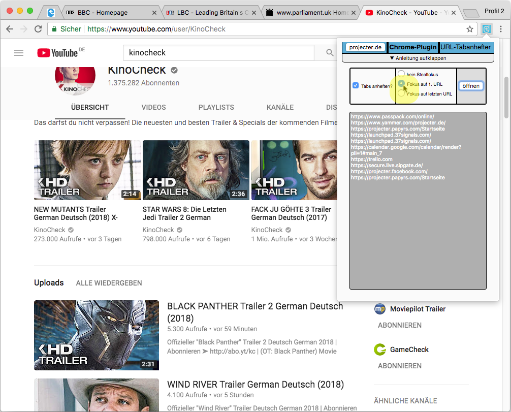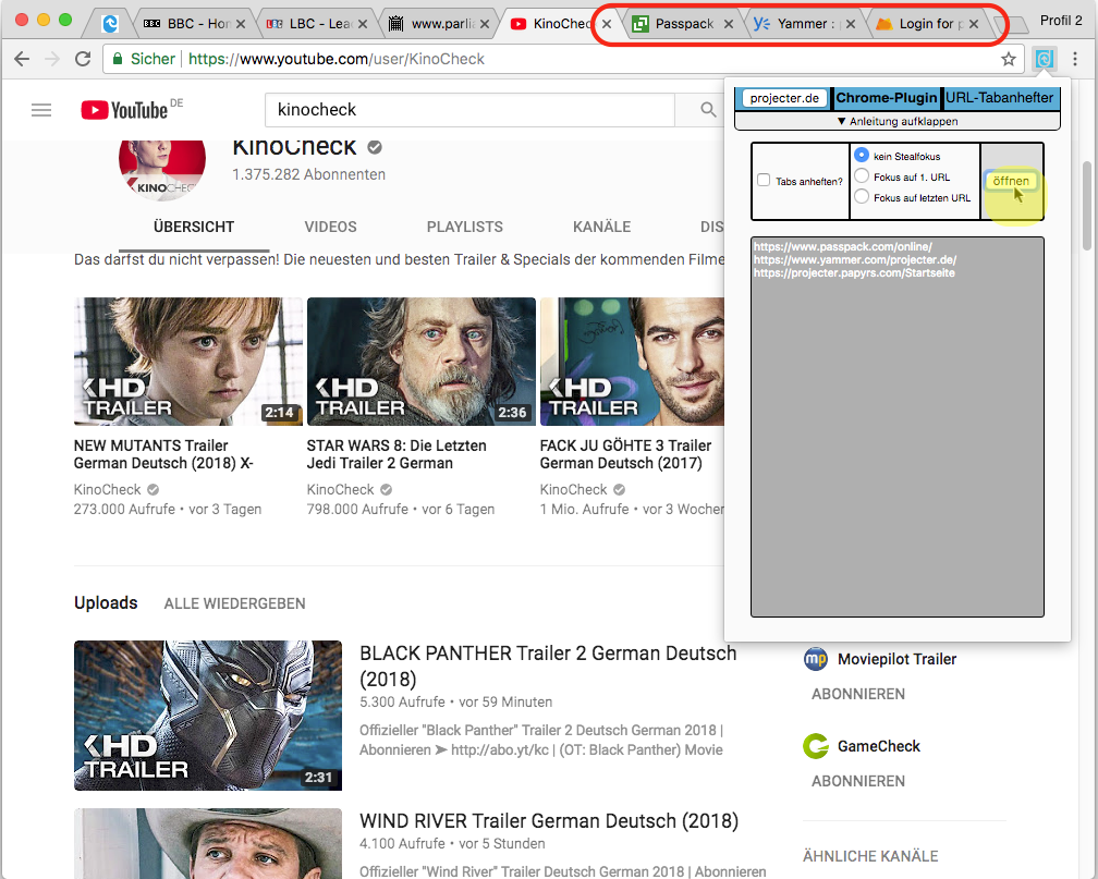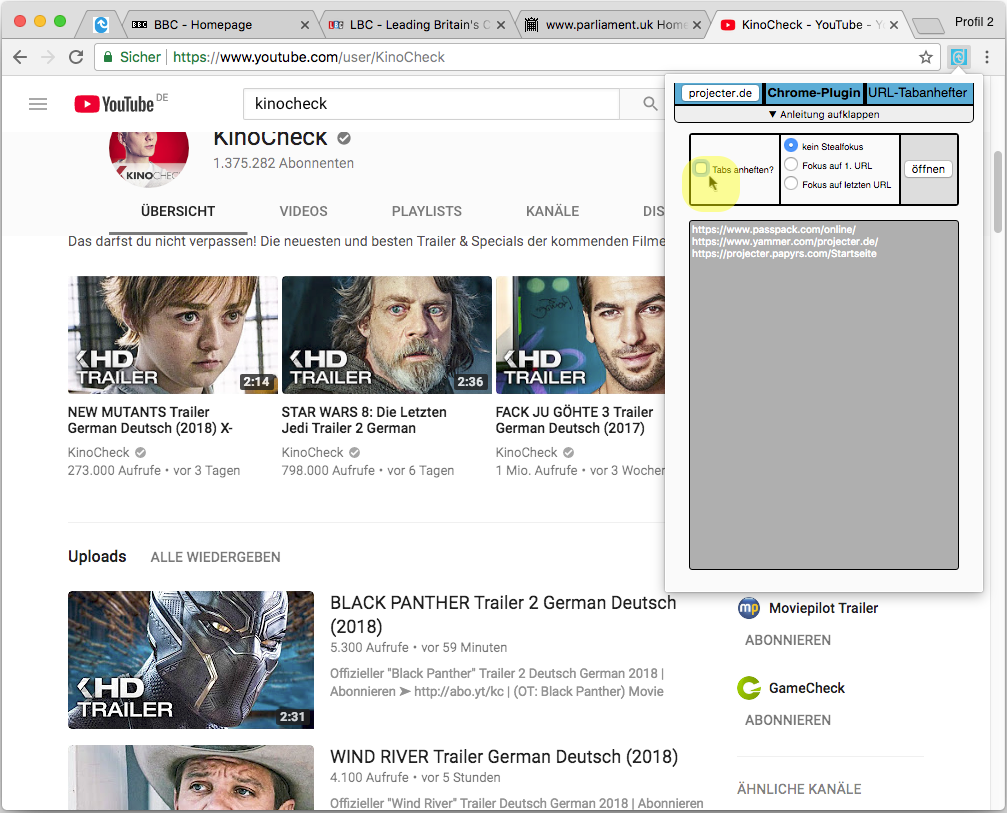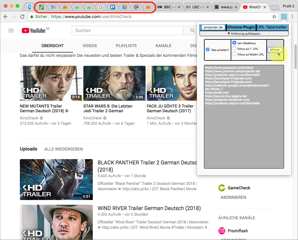 URLs in angehefteten Tabs öffnen \& Wechsle auf den Tab des 1. URLs:
