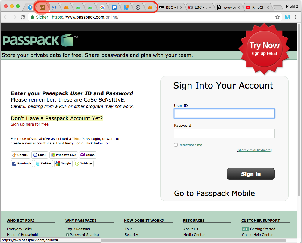 URLs in angehefteten Tabs öffnen. Bleibe auf dem aktuellen Tab:
